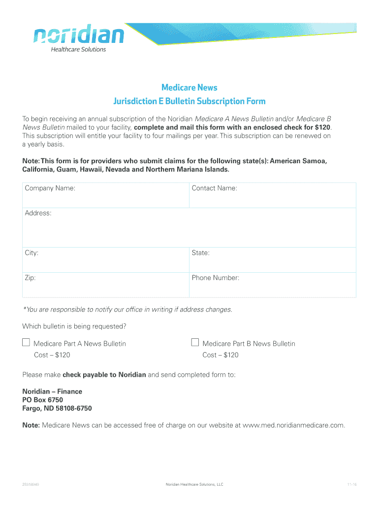 To begin receiving an annual subscription of the Meridian Medicare A News Bulletin and/or Medicare B