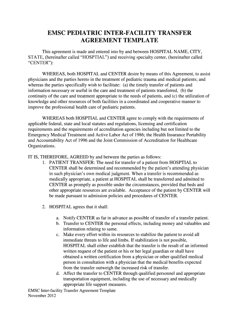 Get the free EMSC PEDIATRIC INTER-FACILITY TRANSFER