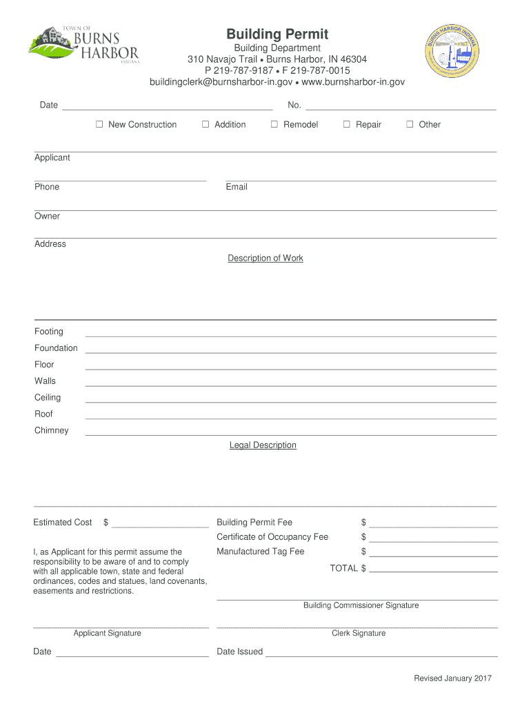 Get the free Building Permit - Town of Burns Harbor