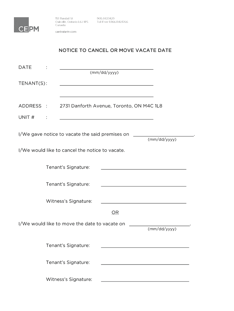 Get the free NOTICE TO CANCEL OR MOVE VACATE DATE ... - Squarespace
