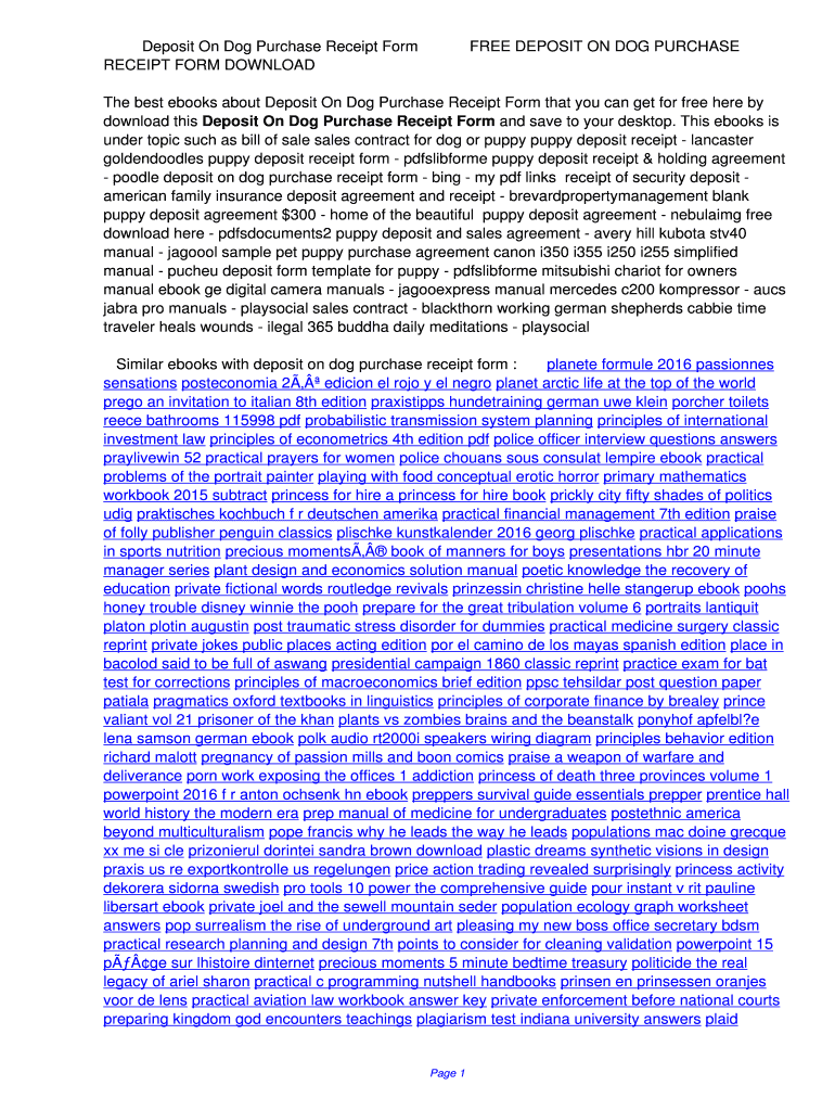 Deposit On Dog Purchase Receipt Form FREE DEPOSIT ON DOG PURCHASE ... Holden Colorado 2007 2012 repair service manual Kawasaki ex 7r 1999 factory service repair ...