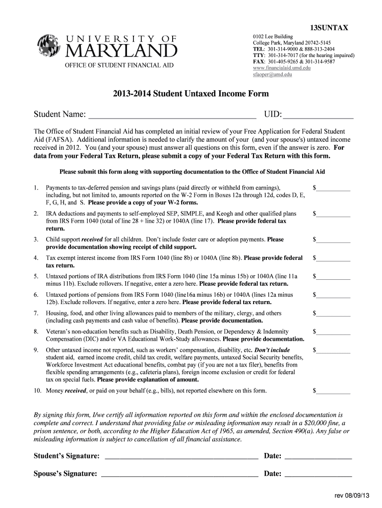 Get the free 2013-2014 Student Untaxed Income Form