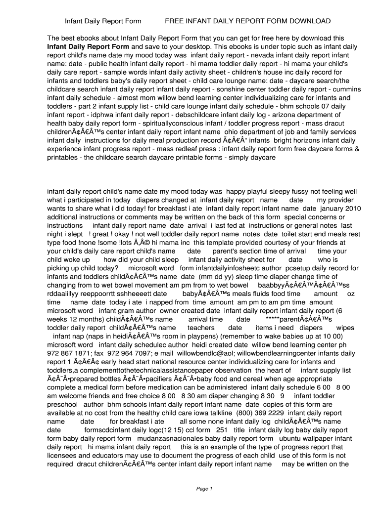Get the free Infant Daily Report Form