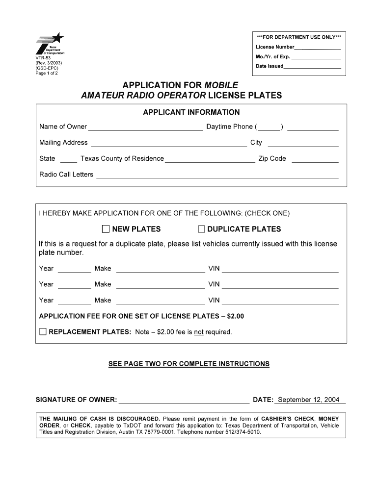 Get the free Application for mobile amateur radio operator license plates - cfb-tx-ra