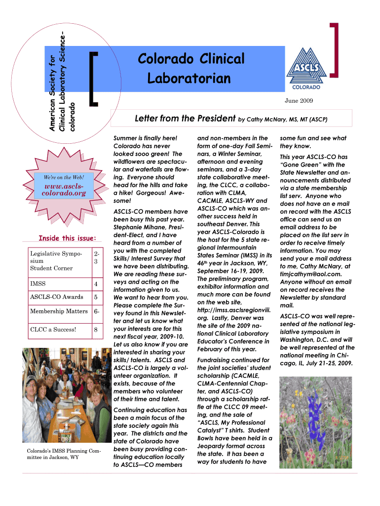 Get the free Colorado Clinical Laboratorian - ASCLS Colorado - asclscolorado