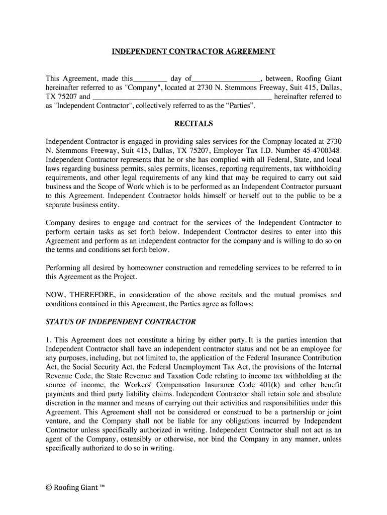 Get the free Independent Contractor Agreement