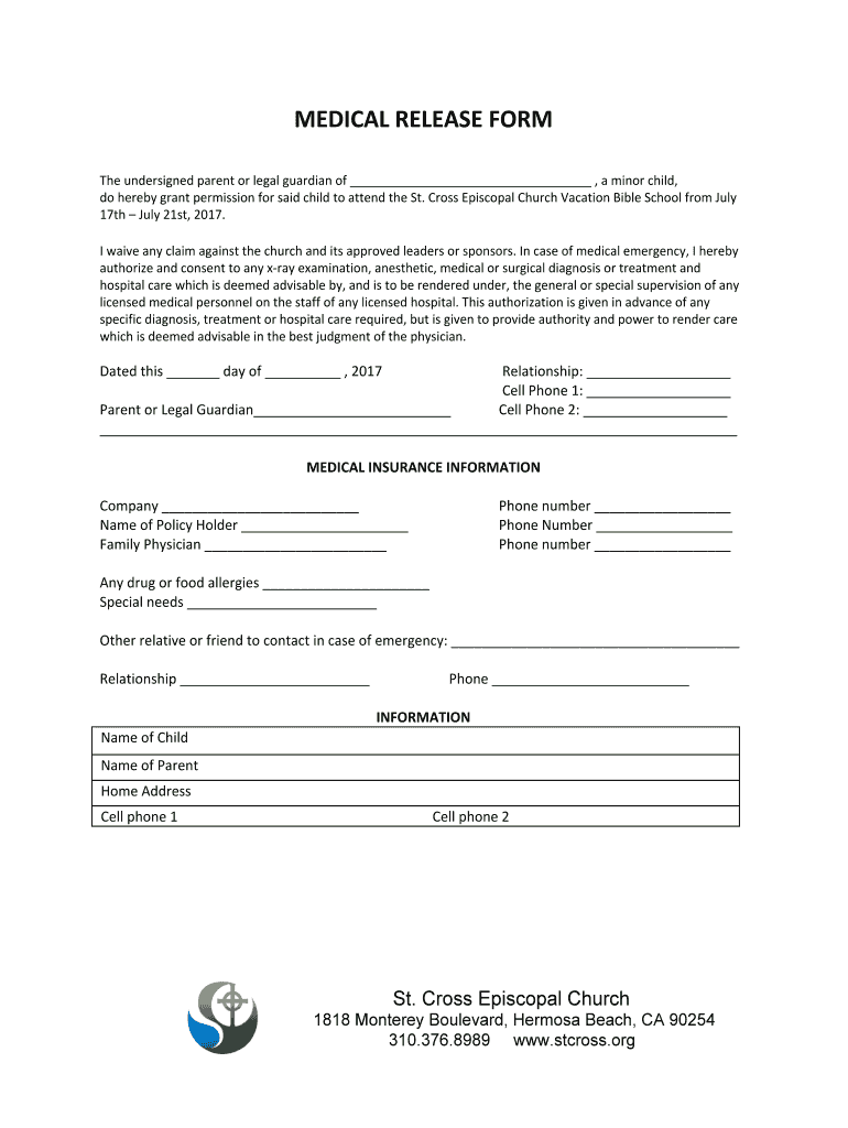 Get the free medical release form - St. Cross Episcopal Church