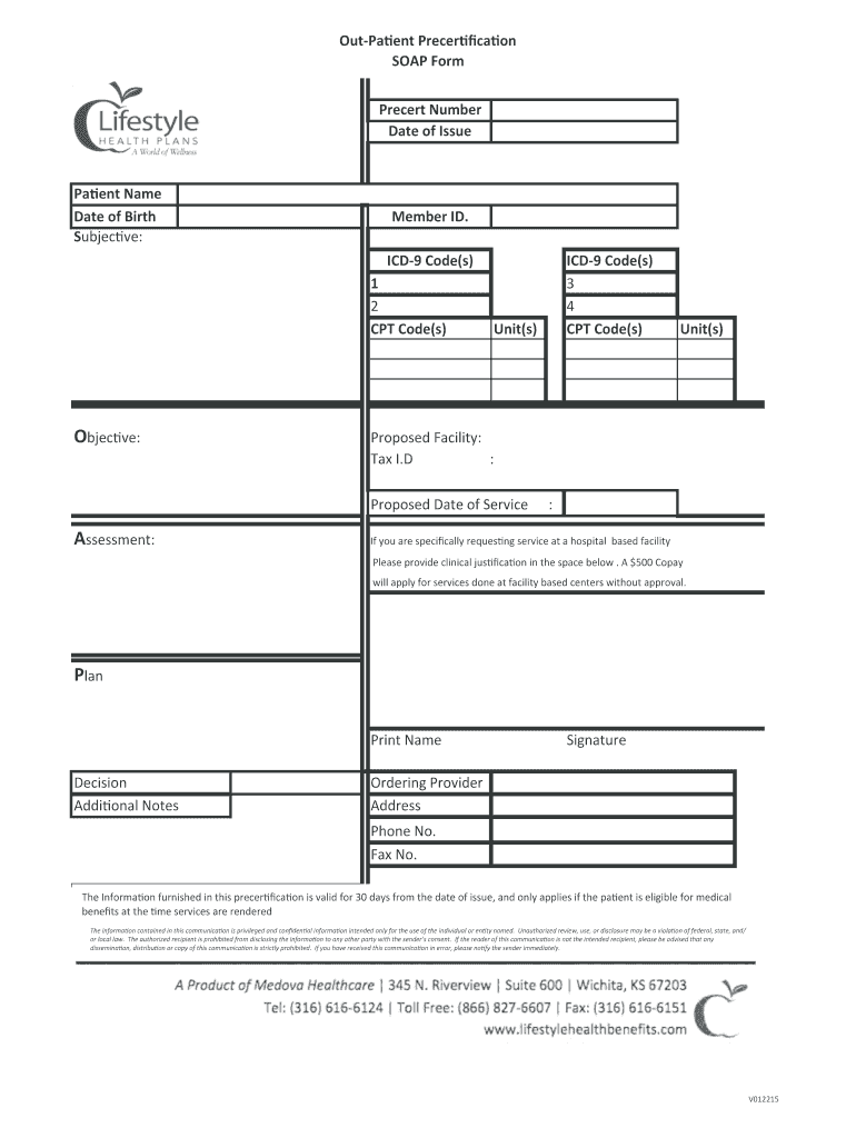 Get the free Out- Pa ent Precer fica on SOAP Form Precert Number Date of ...