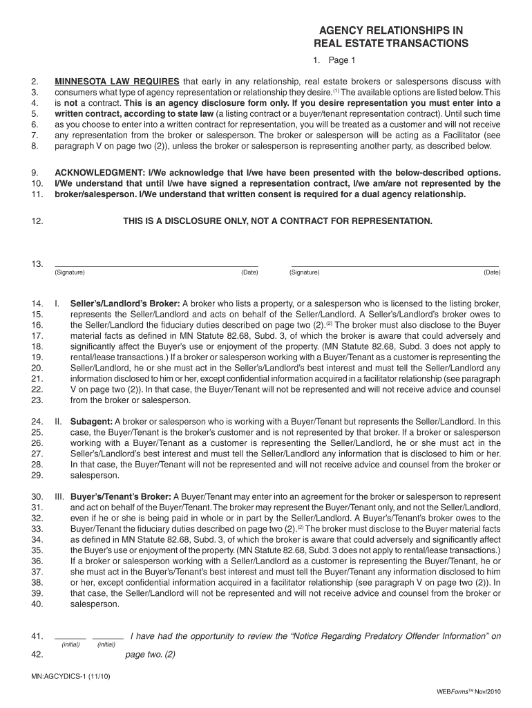 Who Needs the Minnesota Real Estate Agency Disclosure Form?