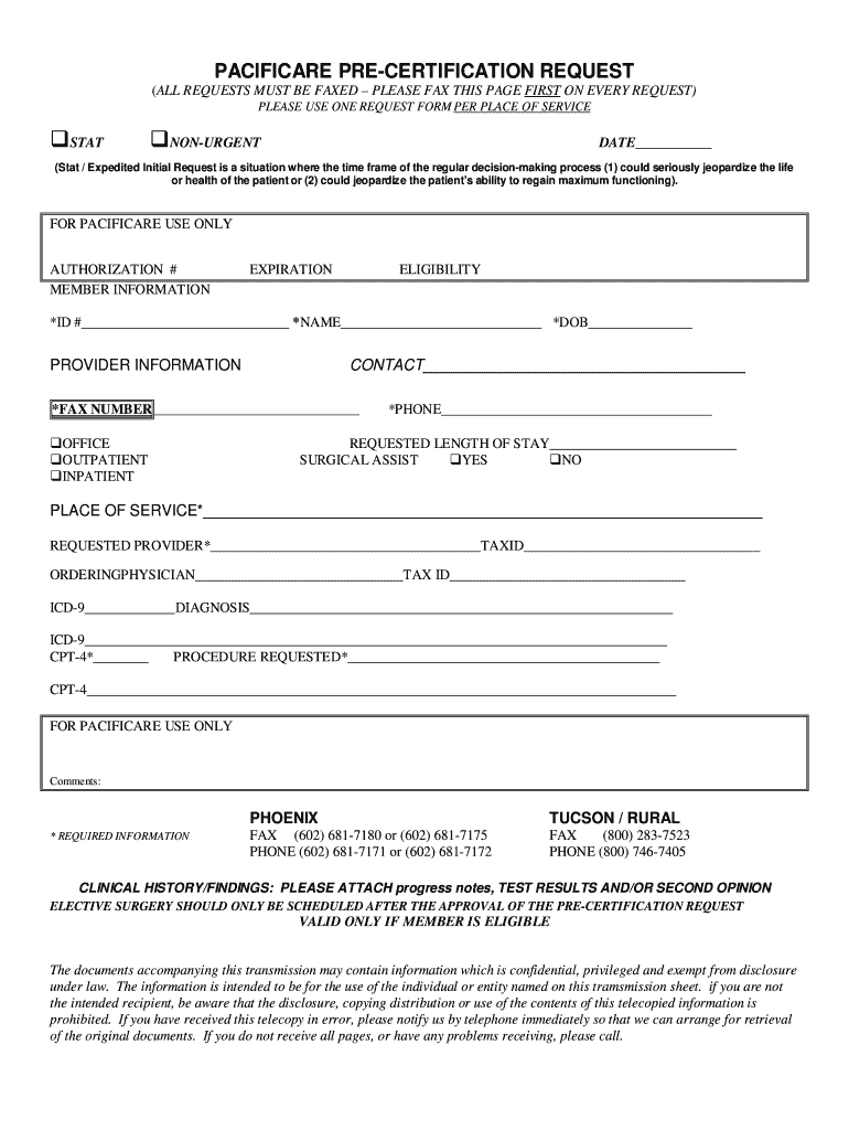 The importance of the Pacificare Pre-Certification Request Form cannot be overstated, as it plays a critical role in obtaining necessary approvals for procedures and services. By securing pre-certification, healthcare providers can ensure that patients receive the appropriate medical attention without unexpected costs.