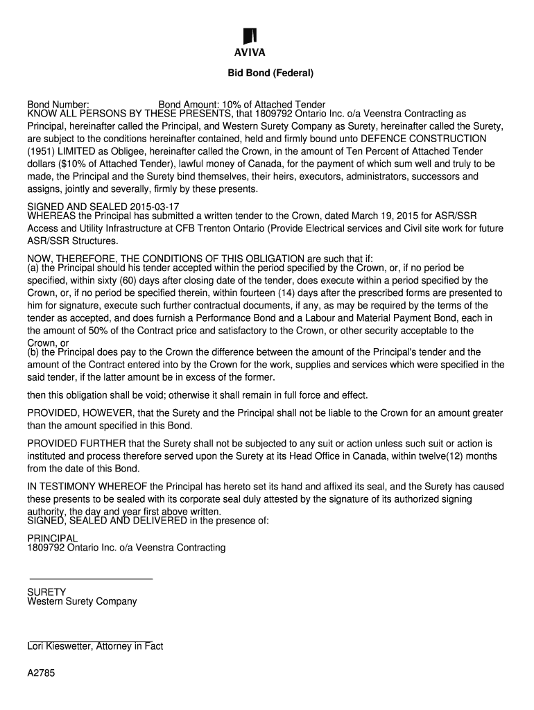 KNOW ALL PERSONS BY THESE PRESENTS, that 1809792 Ontario Inc. o/a Ventral Contracting as