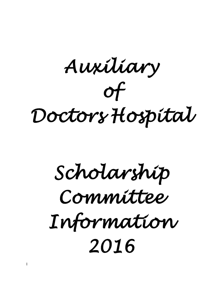 Auxiliary of Doctors Hospital Scholarship Committee Information 2016 1 Auxiliary of Doctors Hospital Scholarship Fund May 2016 The Scholarship Fund of the Auxiliary of Doctors Hospital was developed
