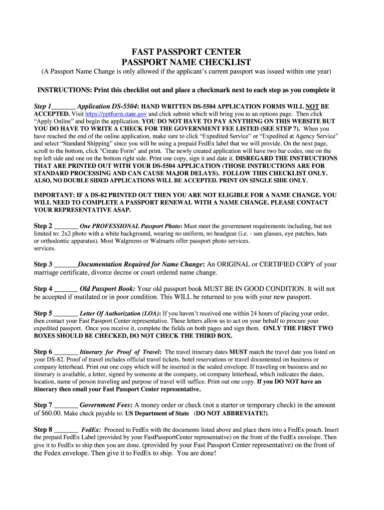 Get the free US Passport Name Change Checklist