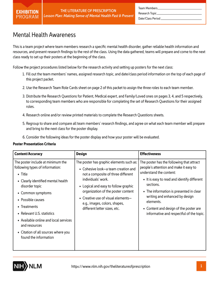 THE LITERATURE OF PRESCRIPTION Lesson Plan: Making Sense of Mental Health Past & Presented Members Research Topic Date/Class Periodontal Health Awareness This is a team project where team members