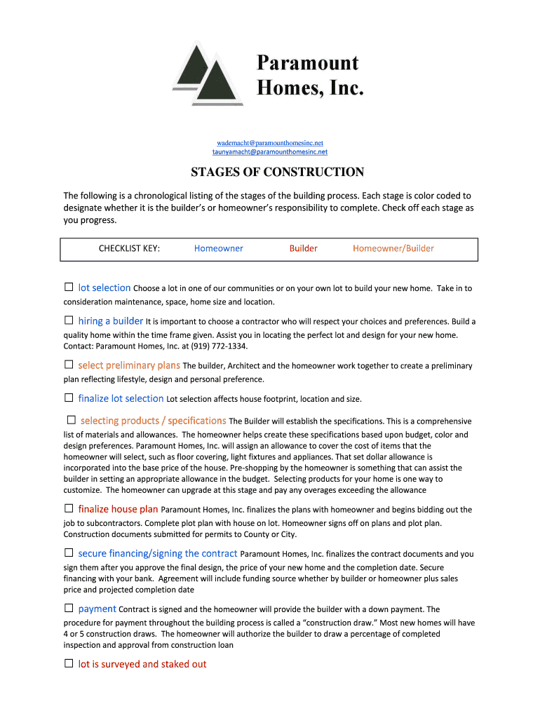 Get the free STAGES OF CONSTRUCTION