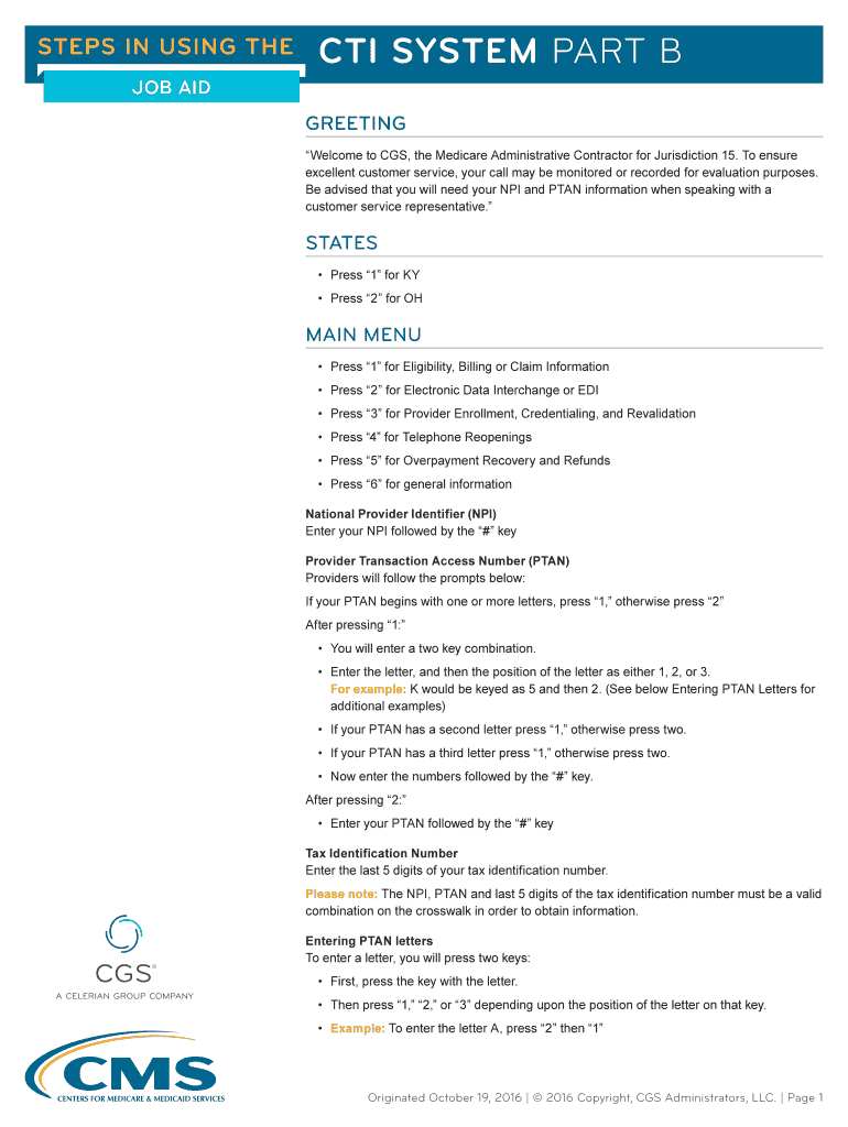 Welcome to CGS, the Medicare Administrative Contractor for Jurisdiction 15. To ensure
