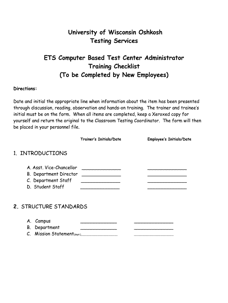 Training Checklist