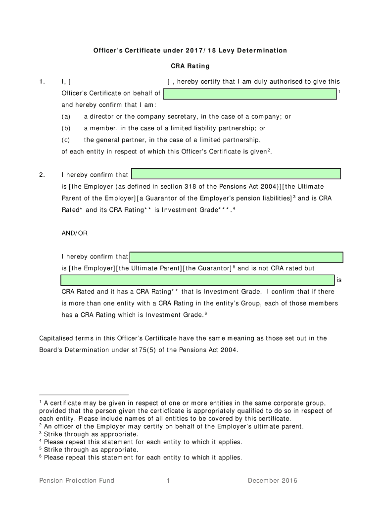 Get the free Officers Certificate under 2017/18 Levy Determination