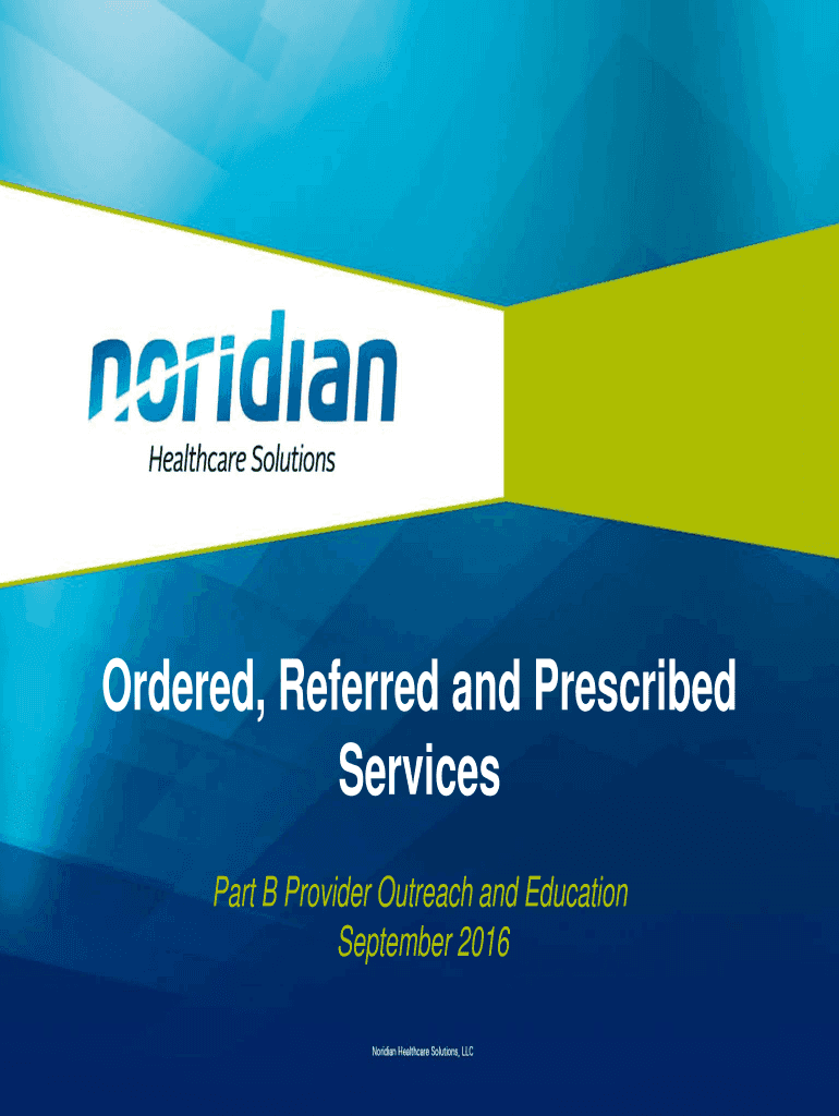Ordered, Referred and Prescribed Services Part B Provider Outreach and Education September 2016Agenda Ordering/Referring Requirements Proper Documentation for Services Ordered or Referred CERT Resources