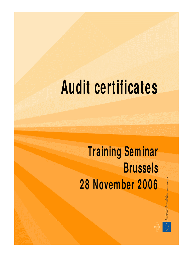 Audit certificates Training Seminar Brussels 28 November 2006 Overview Introduction Audit certificate requirements What When By whom Audit certificate template Audit certificate guidance notes for