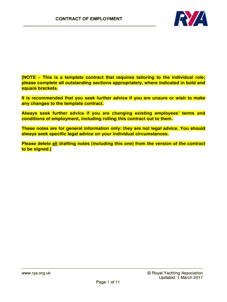 CONTRACT OF EMPLOYMENT NOTE This is a template contract that requires tailoring to the individual role; please complete all outstanding sections appropriately, where indicated in bold and square brackets.