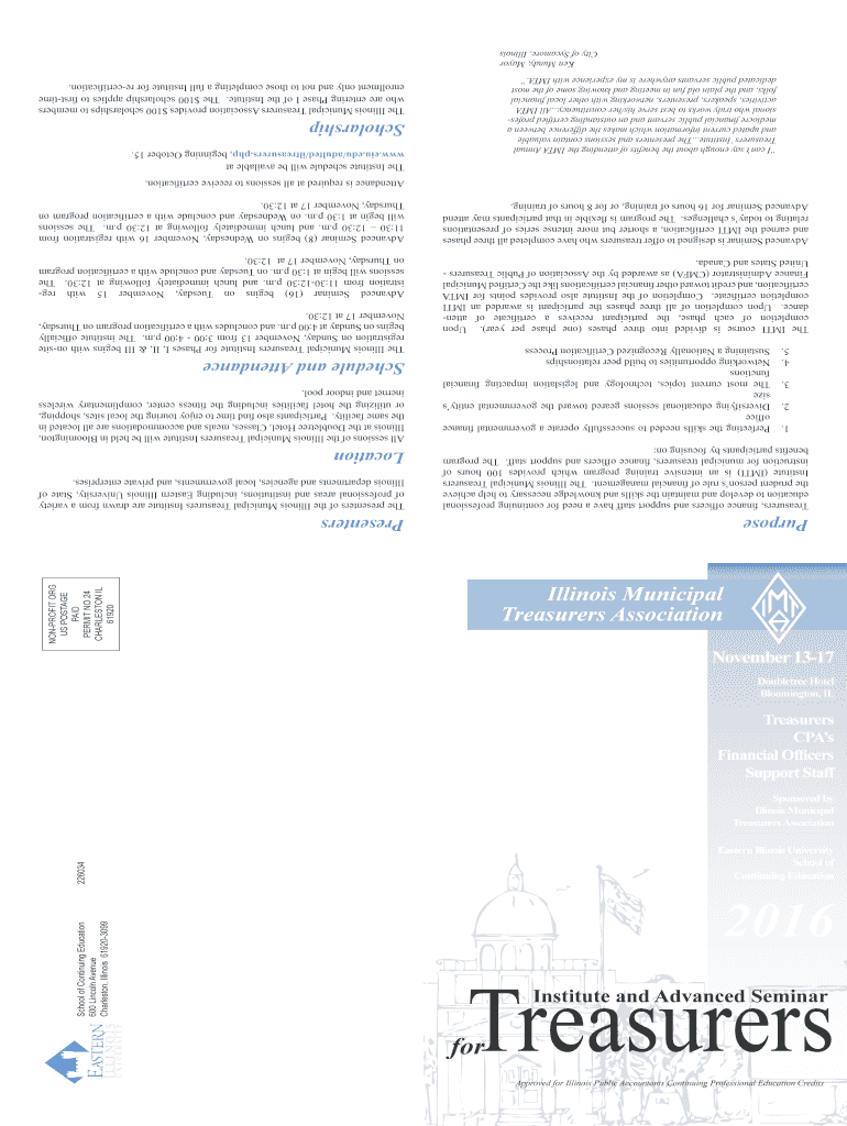 Approved for Illinois Public Accountants Continuing Professional Education Credits School of Continuing Education 600 Lincoln Avenue Charleston, Illinois 619203099 Treasurers for Institute and Advanced