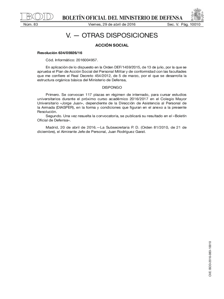 BOLEYN OFFICIAL DEL MINISTER DE DEFENSE /N7JFSOFT EFBCSJMEF4FD71H7053\”4%*4104*$*0/&4 ACC IN SOCIAL Resolution 634/05926/$16E×OGPSNUJDP &OBQMJDBDJOEFMPEJTQVFTUPFOMB0SEFO%&\' EFEFKVMJP QPSMBRVFTF