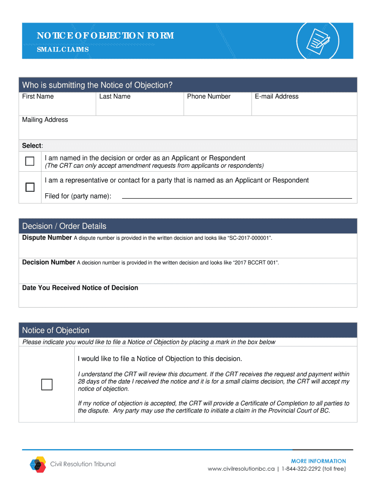How to fill out notice of objection form
