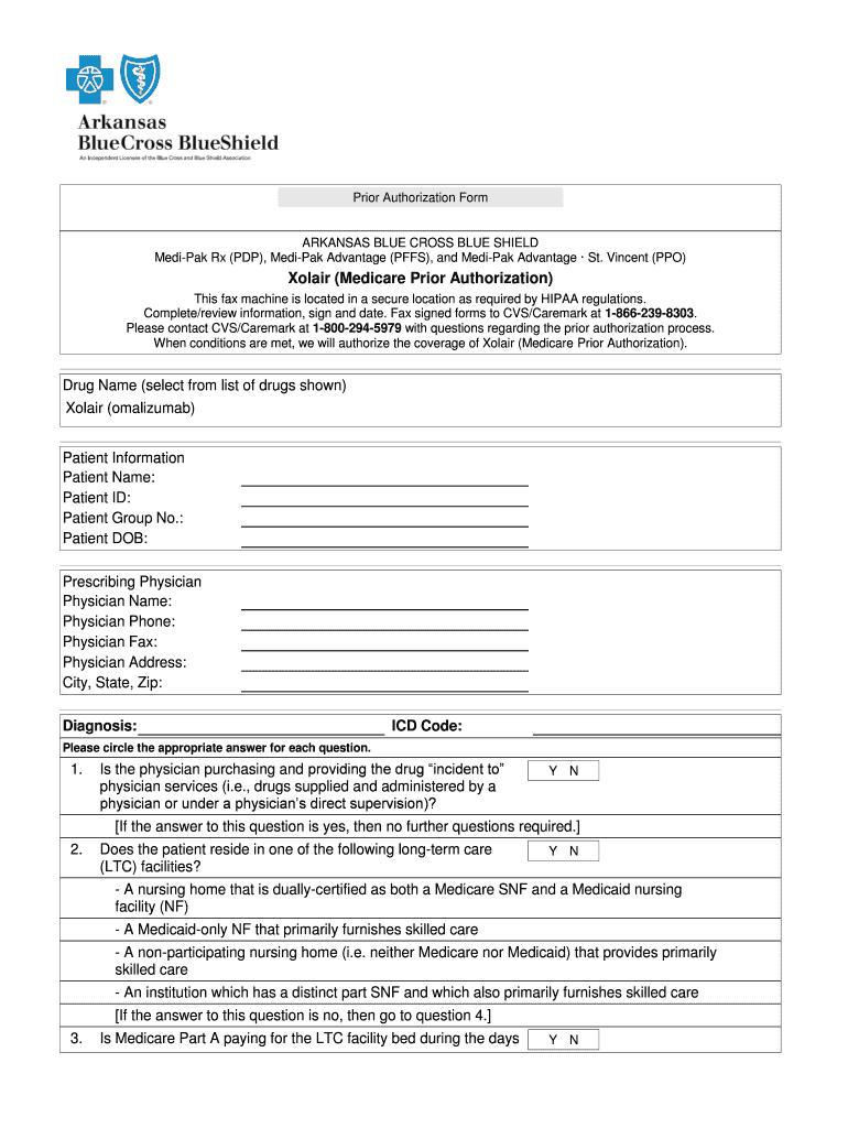 Obtain a copy of the Xolair Medicare Prior Authorization form from the patient's healthcare provider or from the Medicare website.