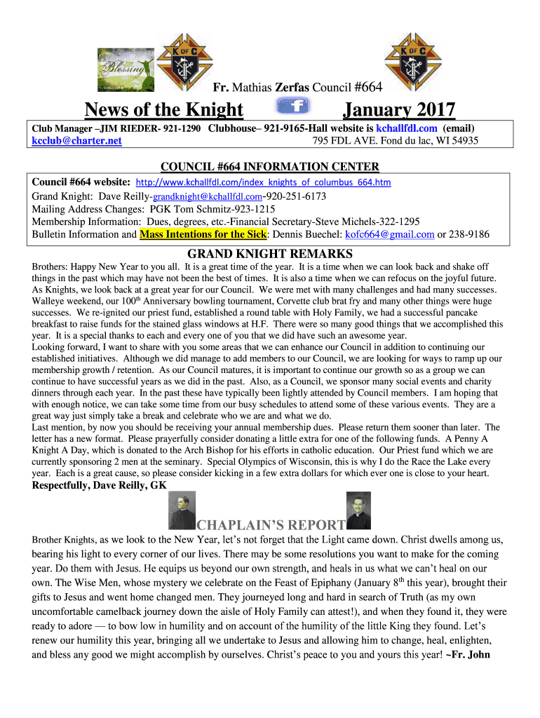 Get the free News of the Knight January 2017 - KC Hall