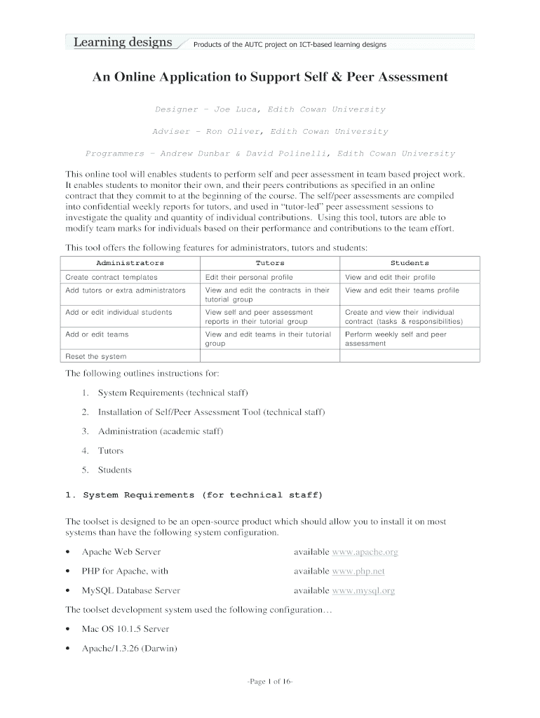 Get the free An Online Application to Support Self & Peer Assessment