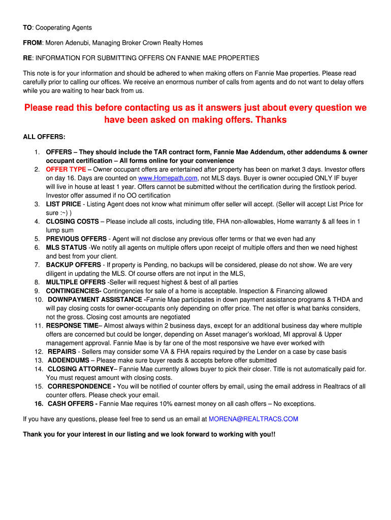 Submission of the Fannie Mae Real Estate Purchase Addendum