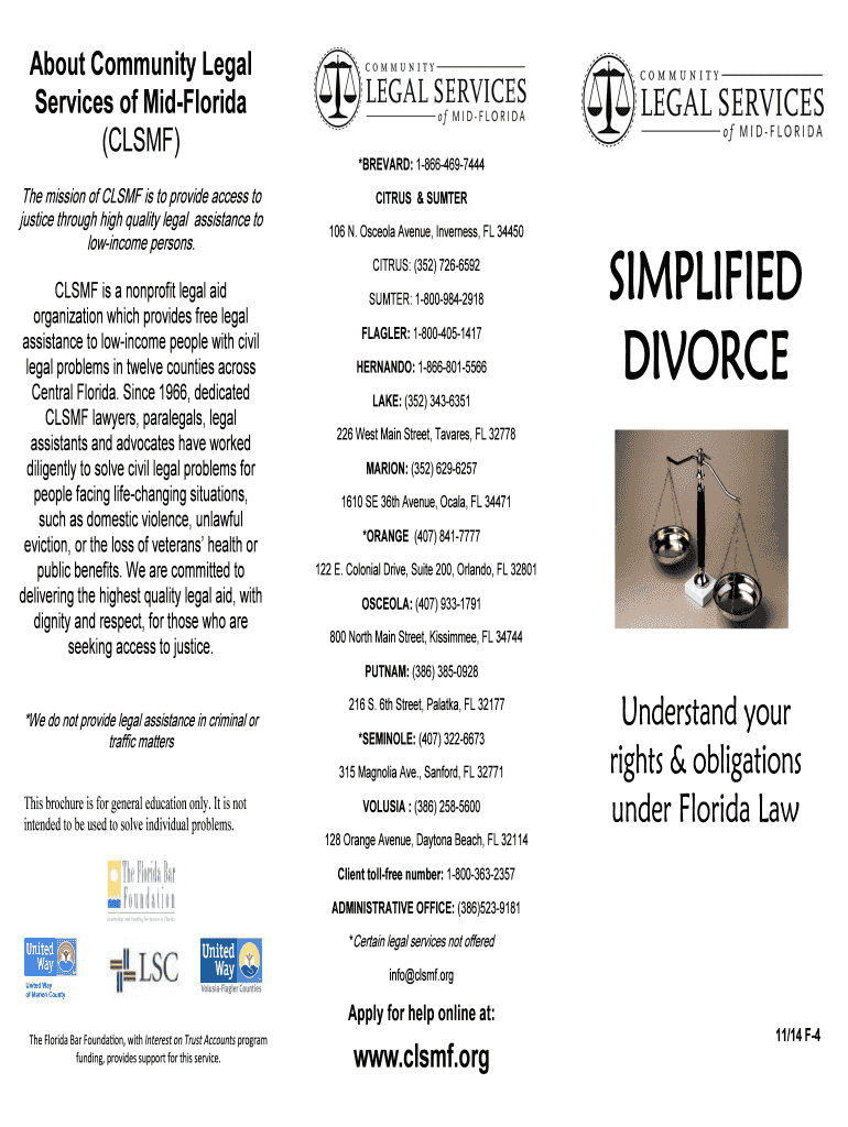 Get the free simplified divorce - Community Legal Services of Mid Florida