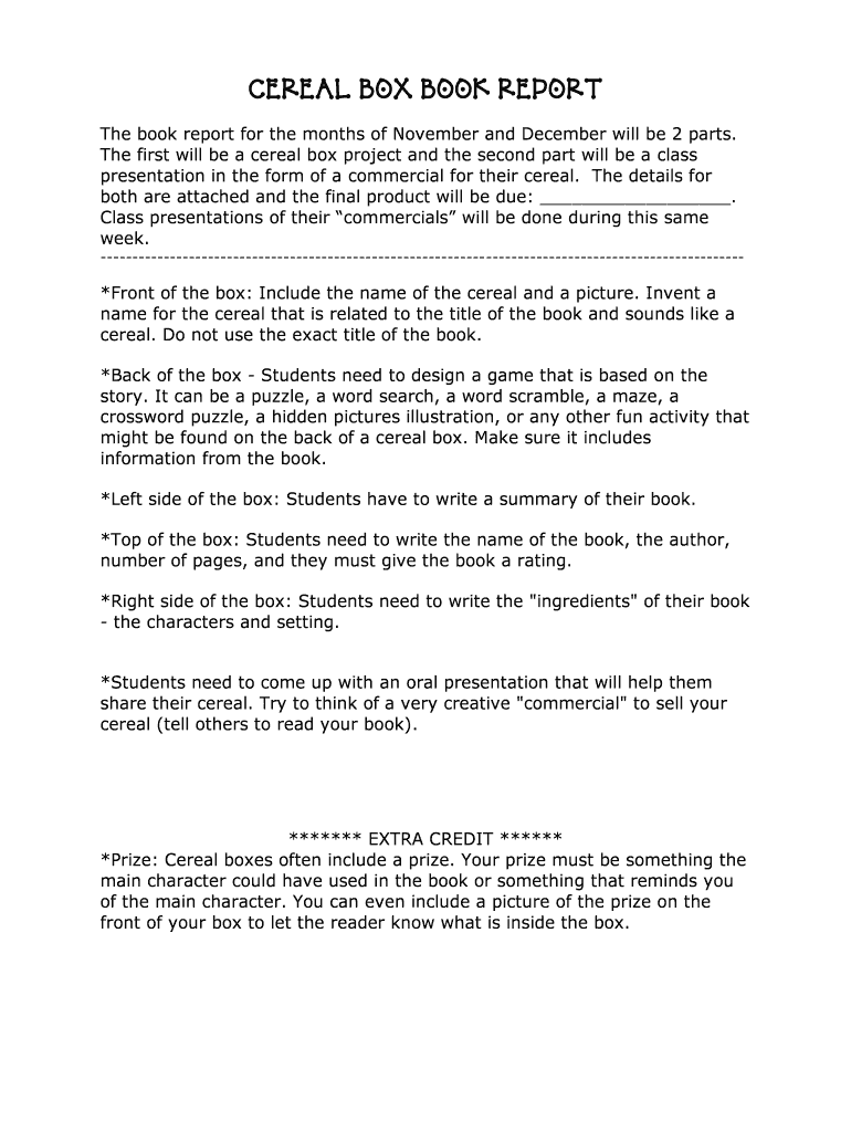 Students who are required to complete a book report assignment may need a cereal box book report as an alternative and creative way to present their understanding of the book.