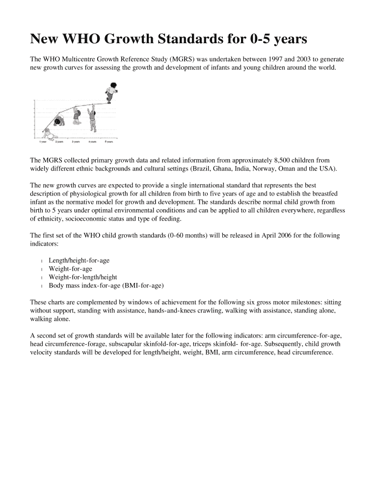 Healthcare providers, childcare centers, and parents are required to monitor and report the growth of children using the new WHO growth standards.