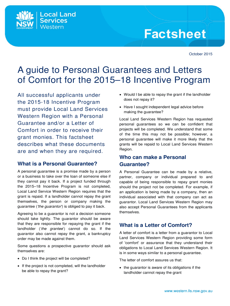 Nsw. gov.au Benjamin Slingsby Team Leader Land Services Sunraysia and Southern Rangelands ben.slingsby lls. More information Jennifer Azevedo Team Leader Land Services Northern Rangelands jennifer. azevedo lls. Western.lls. nsw. gov.au ensure the grant is repaid Comfort. For grants under 50 000 only a Personal Guarantee must be provided. its interests in the landholder When will this process take place independent legal advice. Nsw. gov.au State of New South Wales through Local Land Services...