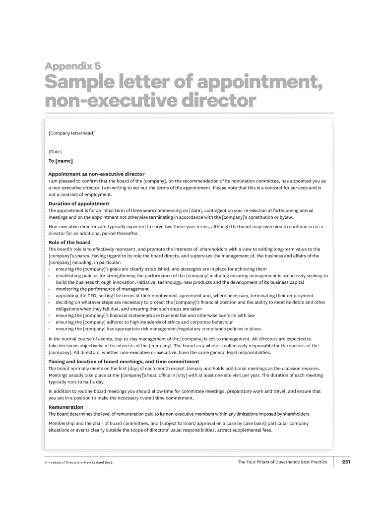Get the free Sample board charter - Institute of Directors in New Zealand