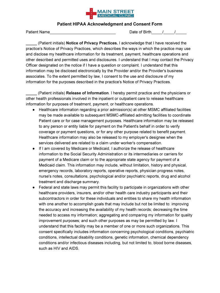 Get the free Patient HIPAA Acknowledgment and Consent Form - Main Street ...