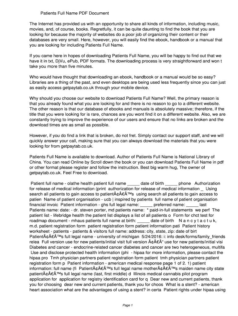 Patients Full Name Pdf is not the form you're looking for?Search for another form here.