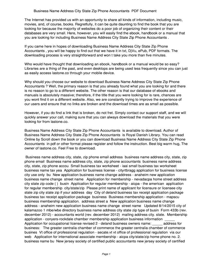 Co. Feel Free to download. phone email Business name address city state zip phone accountants business name address city state zip phone accou Small business tax worksheet - iaai small business tax worksheet business name tax yea Application for business license - cityrtbragg application for business license city use only bu New application business name change address - anaheim new application for regular membership city/state/zip Please print name of applicant for licensure or licensee city...