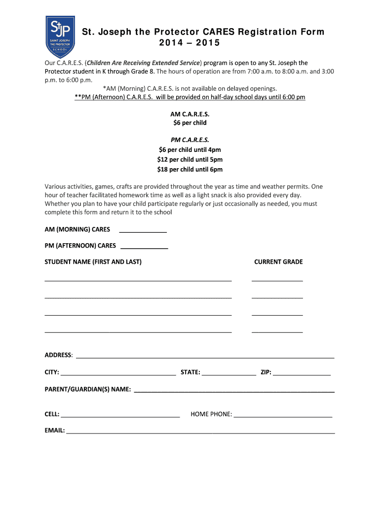 Get the free St. Joseph the Protector CARES Registration Form ... - StJP School