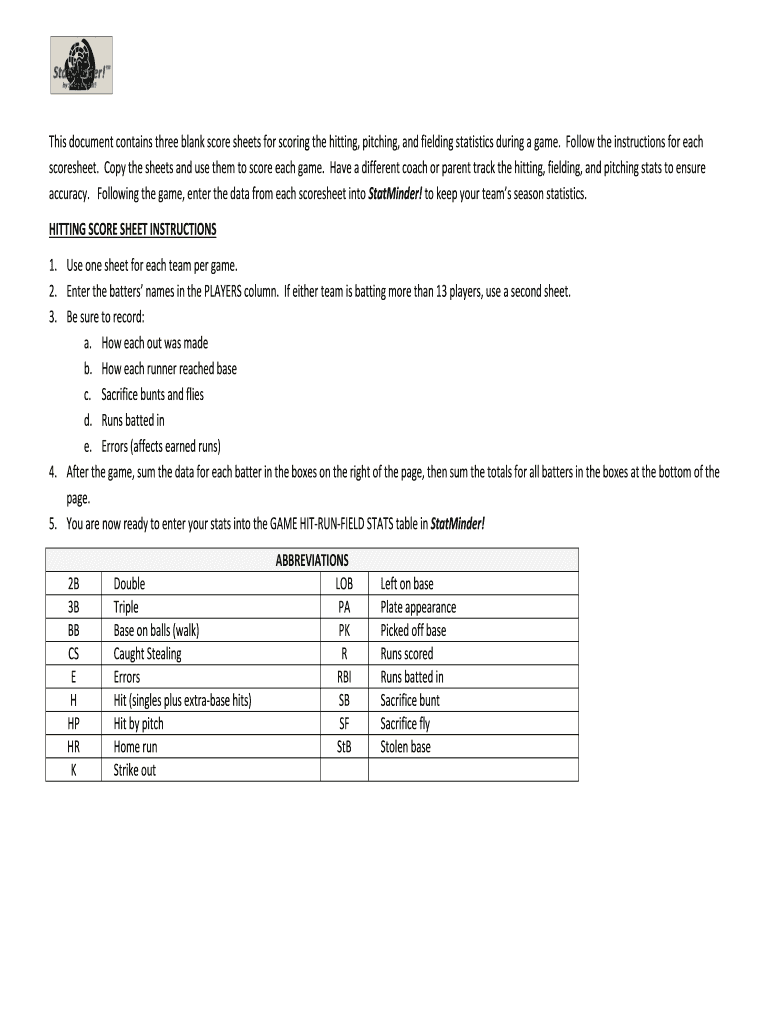 Instructions for scoring are included within the Baseball Score Sheets document. Ensure to review them before the game to familiarize yourself with the process.