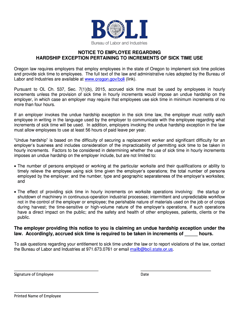 HARDSHIP EXCEPTION PERTAINING TO INCREMENTS OF SICK TIME USE
