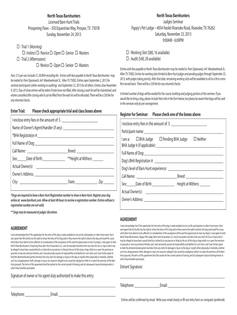Get the free NOTE TO ALL TRIAL EXHIBITORS - North Texas Barnhunters - northtexasbarnhunters