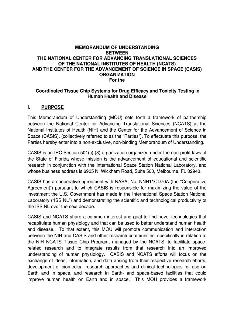 The NCATS and CASIS agreement can be filled out by submitting the required information and documentation through the online portal provided by both organizations.