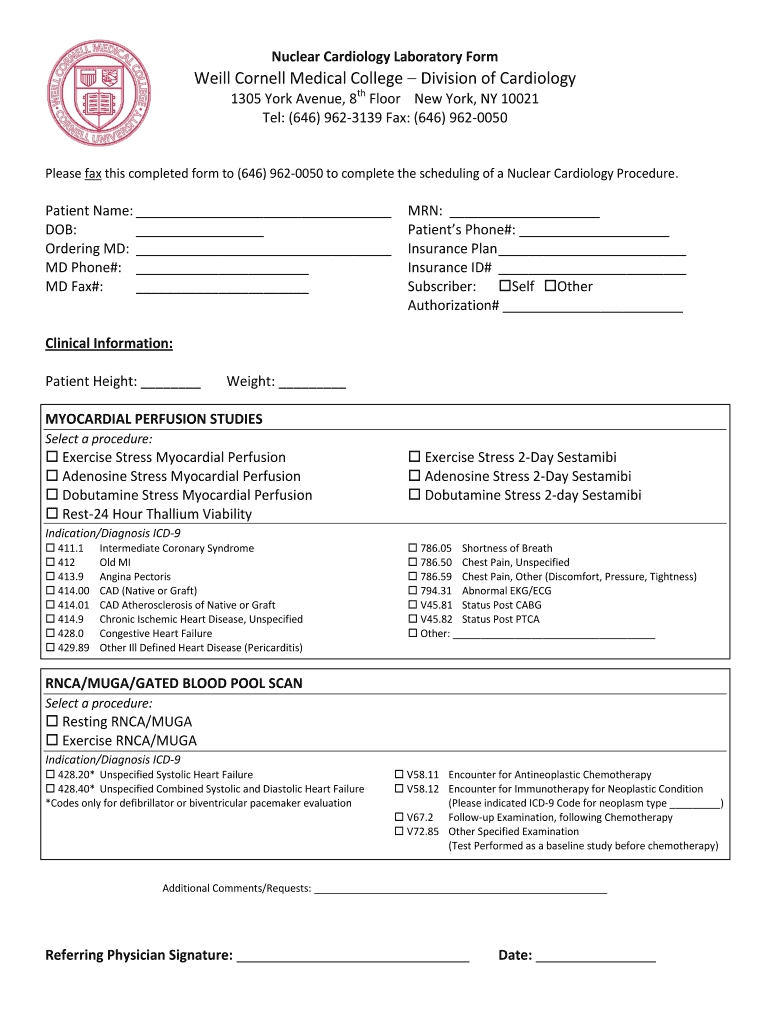 Get the free Nuclear Cardiology Lab Order - Weill Cornell Cardiology