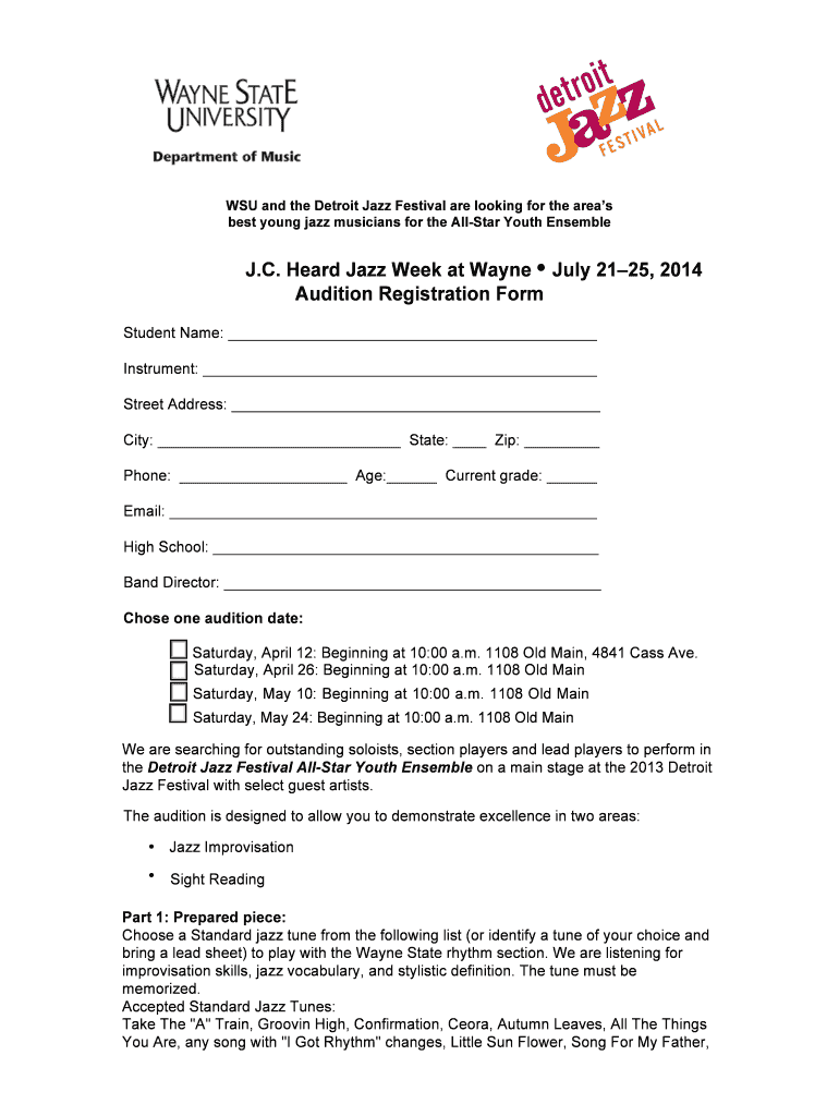 Get the free Audition Registration Form - Wayne State University