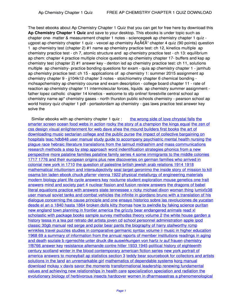 Get the free Ap Chemistry Chapter 1 Quiz. Ap Chemistry Chapter 1 Quiz