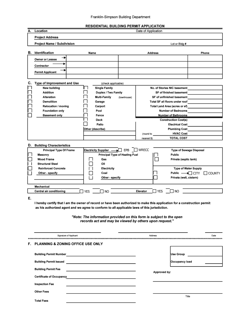 The application holds significant importance as it formalizes the intent to build, protecting the rights of both the applicant and the community. It is essential to understand that all submitted applications are maintained in accordance with the Open Records Act, ensuring transparency and accessibility.