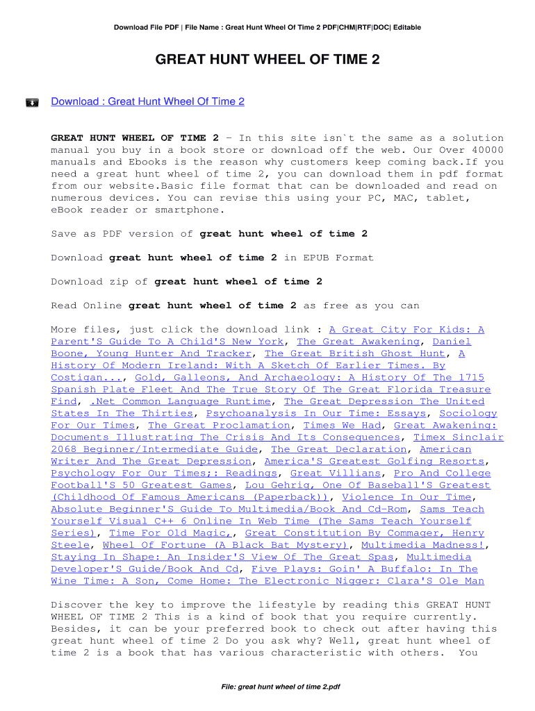 Get the free Great Hunt Wheel Of Time 2. Great Hunt Wheel Of Time 2